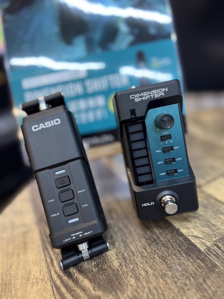 ギターネックを上下することでトランスミッターを操作し、お好みのエフェクターの出力値を変化させます。